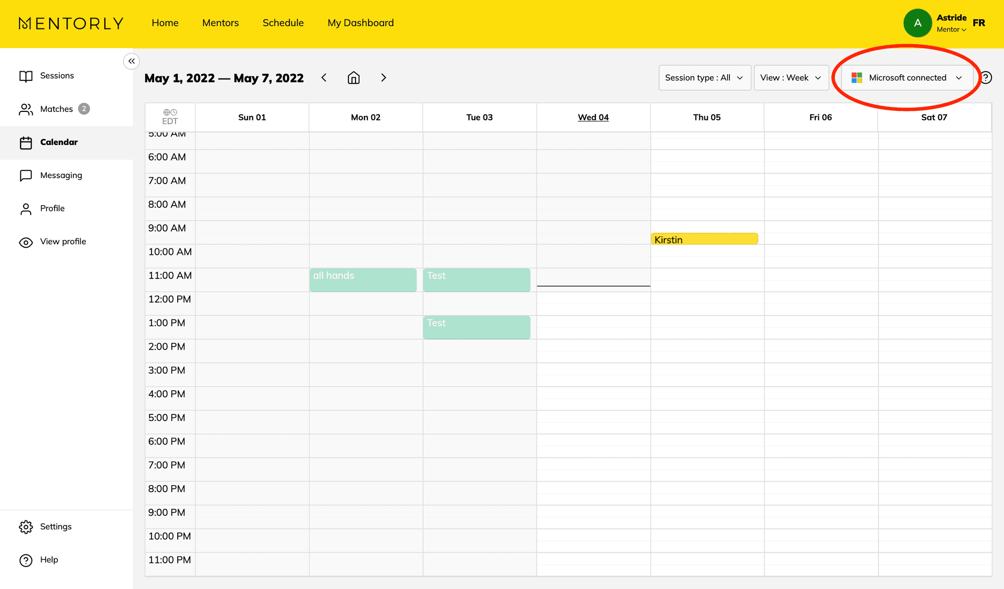 Verify your Calendar tab on Mentorly