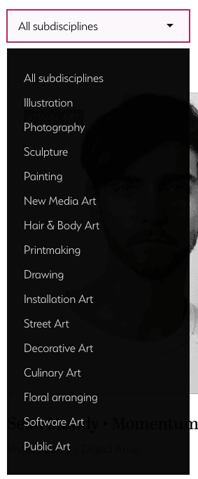 Currently we only allow your profile to be under one discipline (not multiple) which was set up upon creating your account and you can no longer change it yourself. i.e. Visual Art